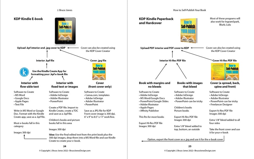 How to Self-Publish Your Book, Create, Publish & Sell Your Book, takes you through all the steps to publishing your book on KDP/Amazon/Kindle. We cover paperback, hardcover, and ebook. Lots of new marketing info, more in-depth e-book info, and additions to how to launch a best-selling book.