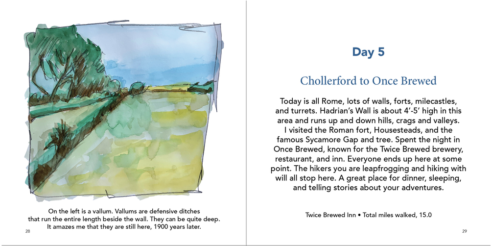 Thank you for following me as I work on my watercolor paintings and my Walking Hadrian's Wall Book. I had a great adventure walking across England and have now turned it into a book. The book is now published. You can download a PDF version of the book, or pick up a copy on Amazon.