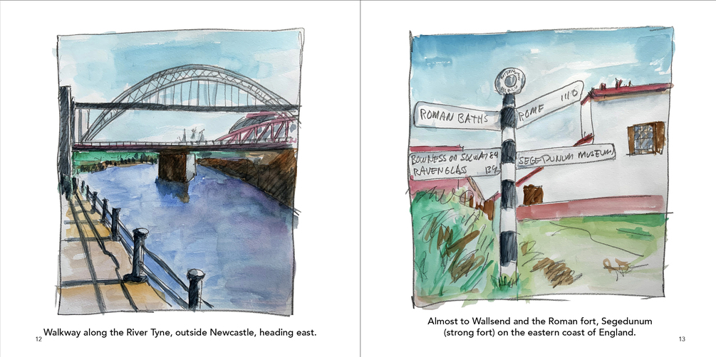 Walking Hadrian’s Wall, Wallsend to Bowness-on-Solway takes you on my walking trek along Hadrian’s Wall and across England in the late summer of 2022. I walked along the famous Hadrian’s Wall built in AD 122 by Emperor Hadrian. Over a period of 10 days, I crossed the country. Starting on the east coast at Wallsend I walked to Bowness-on-Solway on the west coast. The journey has been recreated with watercolor illustrations and daily descriptions of the adventure. Over the 84-mile journey, I met many wonderful people and experienced Roman and English history.