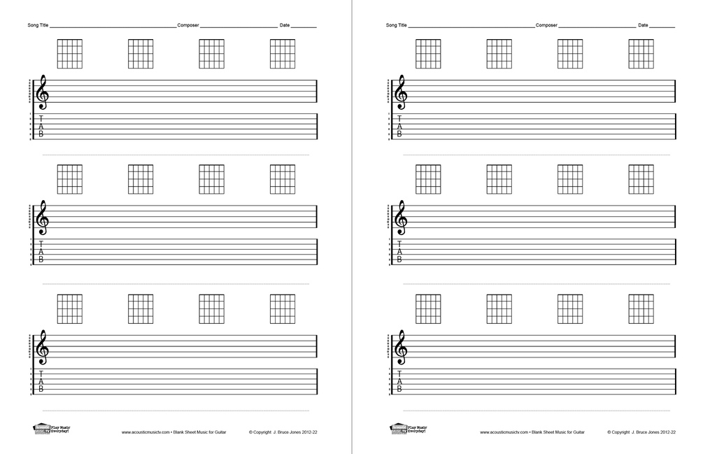 Blank Sheet Music, with Staff and Tab Lines for Guitar, PDF Book