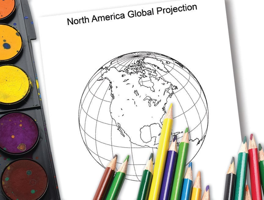World Maps and Globes Printable PDF Coloring Book, Blank, Outline Projection Maps and Globes